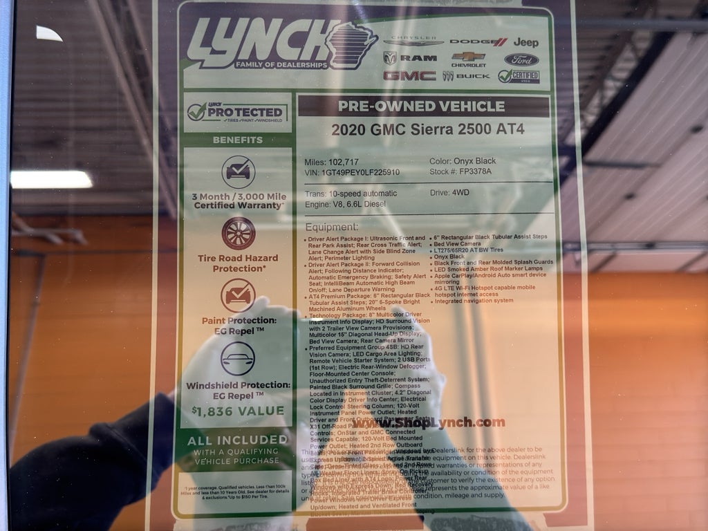 Safety and convenience options include advanced towing aids and driver-assist features designed to make heavy-duty driving easier and safer. Well-maintained and ready for immediate use in Burlington, WI, this GMC Sierra 2500 AT4 represents a powerful, versatile choice for owners who demand capability, comfort, and technology in a diesel pickup. Contact us today to schedule a test drive and experience its performance firsthand.