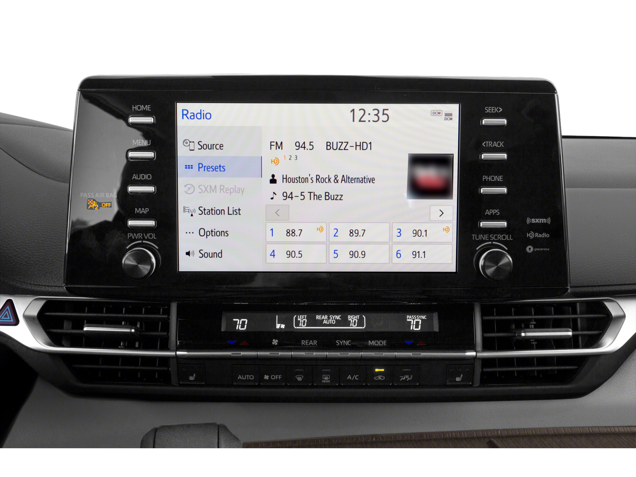 - Radio: Audio Plus -inc: 9" touchscreen, 8 speakers, Apple CarPlay, Android Auto, Amazon Alexa compatibility, USB media port, 6 USB charging ports, hands-free phone capability, music streaming via Bluetooth®, SiriusXM w/3-month All Access trial subscription, Safety Connect w/1-year trial and Wi-Fi Connect w/up to 2GB w/3-month trial