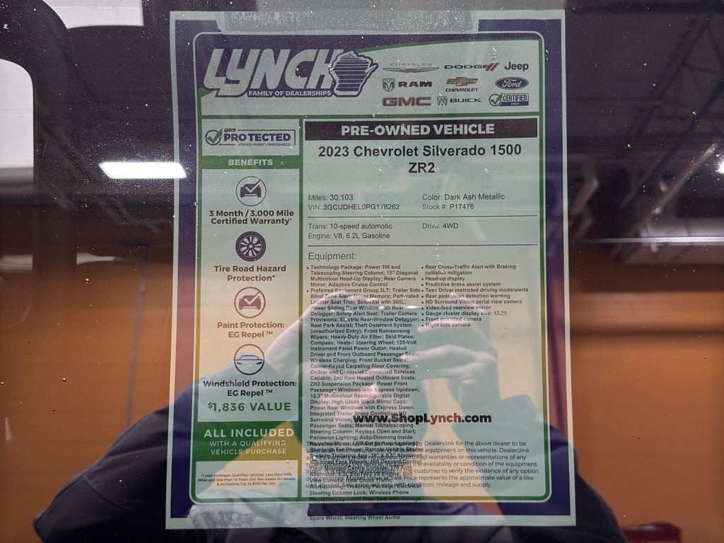 This 1/2 ton pickup has auto-adjust speed for safe following. Start this 1/2 ton pickup from inside with remote start. It's Cross-Traffic Alert: Safeguarding you from unexpected traffic when reversing. The Chevrolet Silverado offers Android Auto for seamless smartphone integration. The steering wheel audio controls on this 1/2 ton pickup keep the volume and station within easy reach. This Chevrolet Silverado stays safely in its lane with Lane Keep Assist. It is equipped with the latest generation of XM/Sirius Radio. This model has a clean CARFAX vehicle history report. See what's behind you with the back up camera on this unit. This model's Lane Departure Warning helps keep you in your lane. This vehicle is a certified CARFAX 1-owner. An off-road package is equipped on this 2023 Chevrolet Silverado 1500. Apple CarPlay: Seamless smartphone integration for this unit - stay connected and entertained on the go! The leather seats in this model are a must for buyers looking for comfort, durability, and style.
