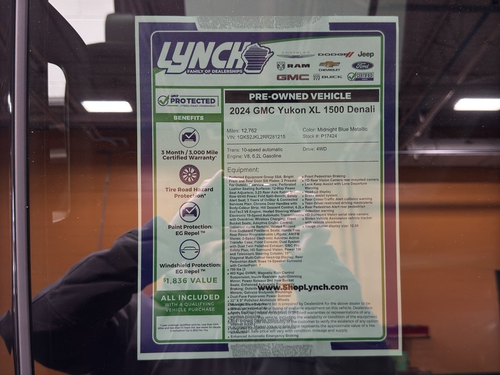 This 1/2 ton suv has automated speed control that adjusts to maintain a safe following distance, enhancing highway driving convenience. Protect this unit from unwanted accidents with a cutting edge backup camera system. It has a clean CARFAX vehicle history report. Keep your hands warm all winter with a heated steering wheel in this 1/2 ton suv . The installed navigation system will keep you on the right path. It features a high end BOSE stereo system. It stays safely in its lane with Lane Keep Assist. Bluetooth® technology is built into it, keeping your hands on the steering wheel and your focus on the road. This 2024 GMC Yukon XL 1500 warns of approaching vehicles with Cross-Traffic Alert. Never get into a cold vehicle again with the remote start feature on this model. This 1/2 ton suv comes equipped with Android Auto for seamless smartphone integration on the road.