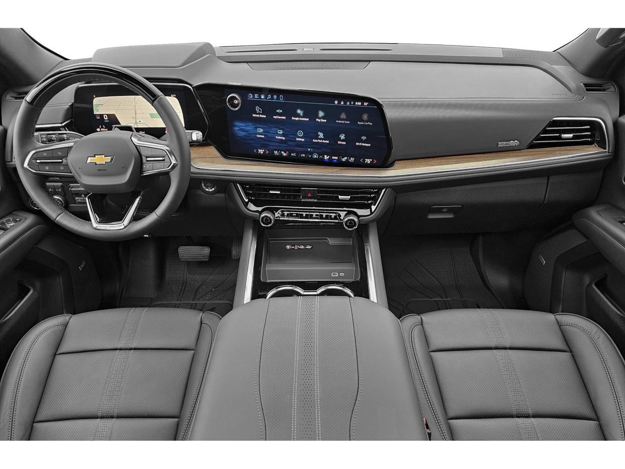 2026 Chevrolet Tahoe High Country – A premium full-size SUV that combines commanding capability with upscale comfort and advanced technology, the Tahoe High Country stands at the top of the lineup with bold styling and impressive performance. Powered by a strong 6.2L EcoTec3 V8 engine producing 420 horsepower paired with a smooth 10-speed automatic transmission, it delivers confident acceleration and strong towing capability for both family adventures and heavy-duty tasks. The High Country trim adds distinctive luxury touches including a signature grille, premium leather seating, real wood interior accents, and advanced ride technology like Magnetic Ride Control with available Four-Corner Air Ride Adaptive Suspension for a smooth, composed drive. Inside, the spacious three-row cabin offers generous passenger room and cargo capacity along with modern technology such as a large infotainment touchscreen, digital driver display, head-up display, and available hands-free Super Cruise driving assistance. With its refined interior, powerful performance, and impressive versatility, the 2026 Chevrolet Tahoe High Country is a top-tier SUV built to deliver comfort, capability, and commanding presence on every journey.